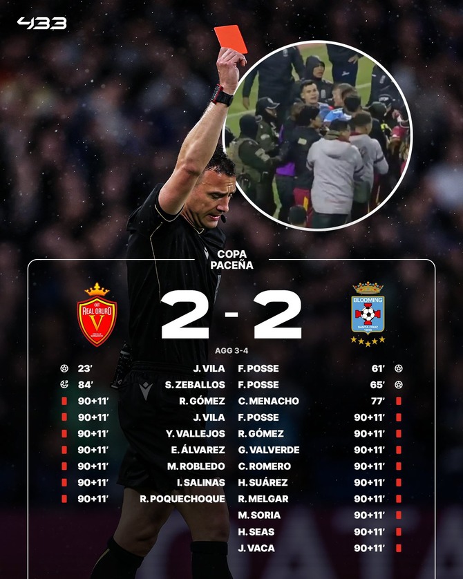 1: 名無し@サカサカ10 2025/11/28(金) 15:00コパ・ボリビアの準々決勝 ブルーミング対レアル・オルロ 2ー2(初戦を2-1で勝利していたブルーミング···