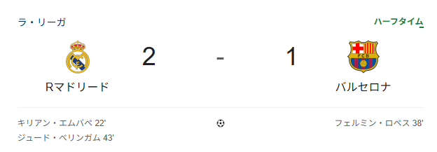 【速報】レアルマドリーvsバルセロナ、点の取り合いの激アツ展開で前半終了wwwwwww