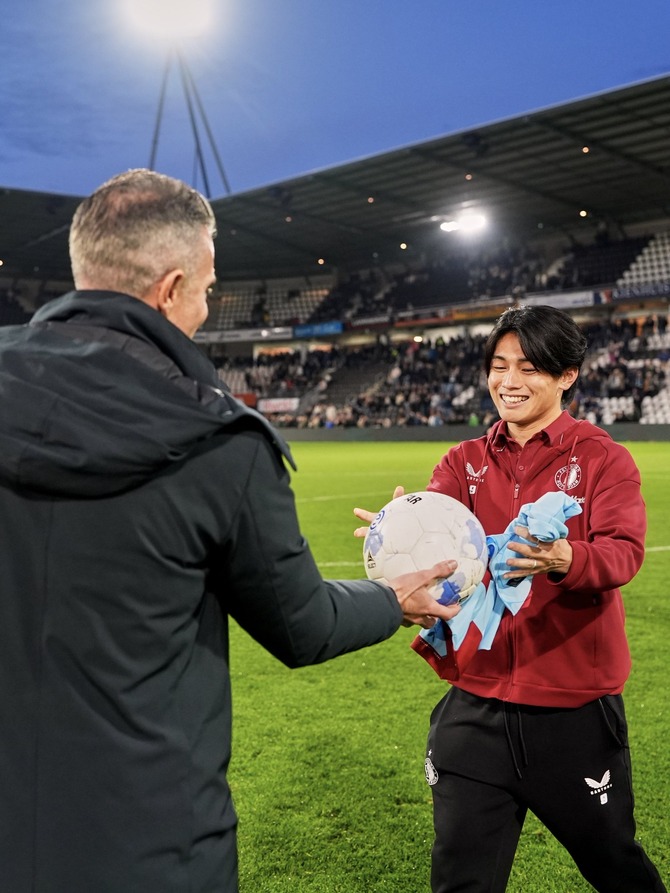 188: 名無し@サカサカ10 2025/10/20(月) 02:39:06.40 ファンペルシーから上田綺世へ試合後プレゼント 『受け取れ、ハットトリックのヒーロー』 ···