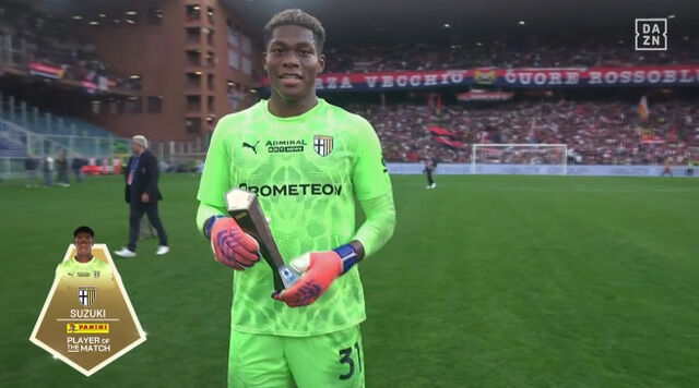 【朗報】パルマGK鈴木彩艶、セーブしまくりPKも止めてMOMキターー!!wwww